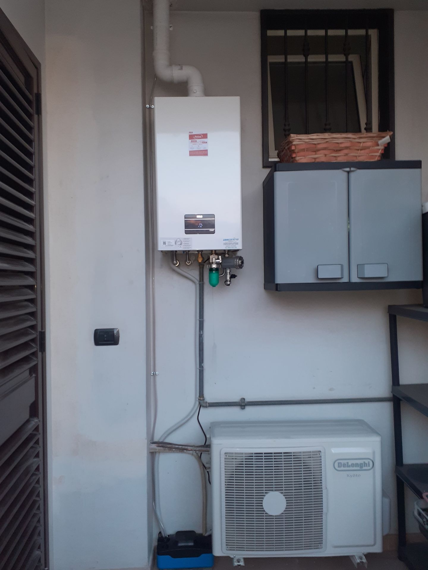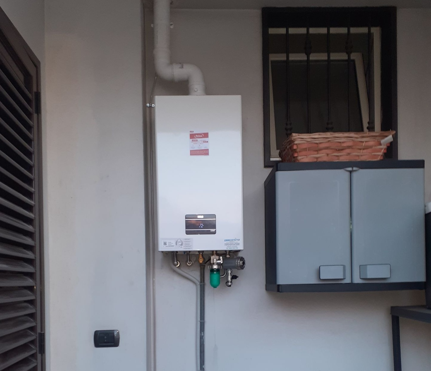 Il cliente ci contatta per la sostituzione della vecchia caldaia con una a condensazione, a causa del malfunzionamento dell’apparecchio esistente, la gestione da remoto del riscaldamento e dell’acqua calda sanitaria e l’adeguamento dell’impianto.